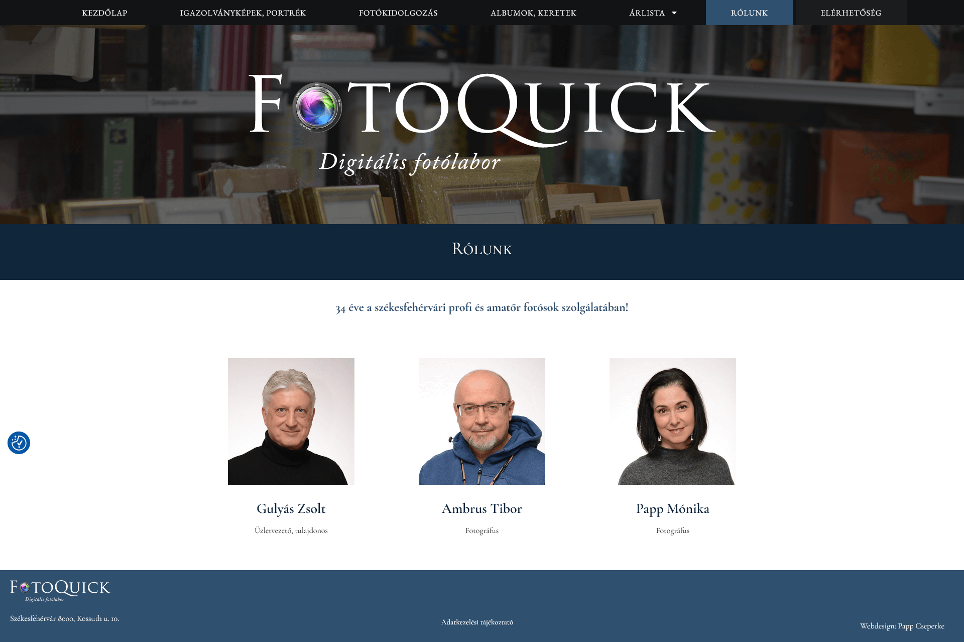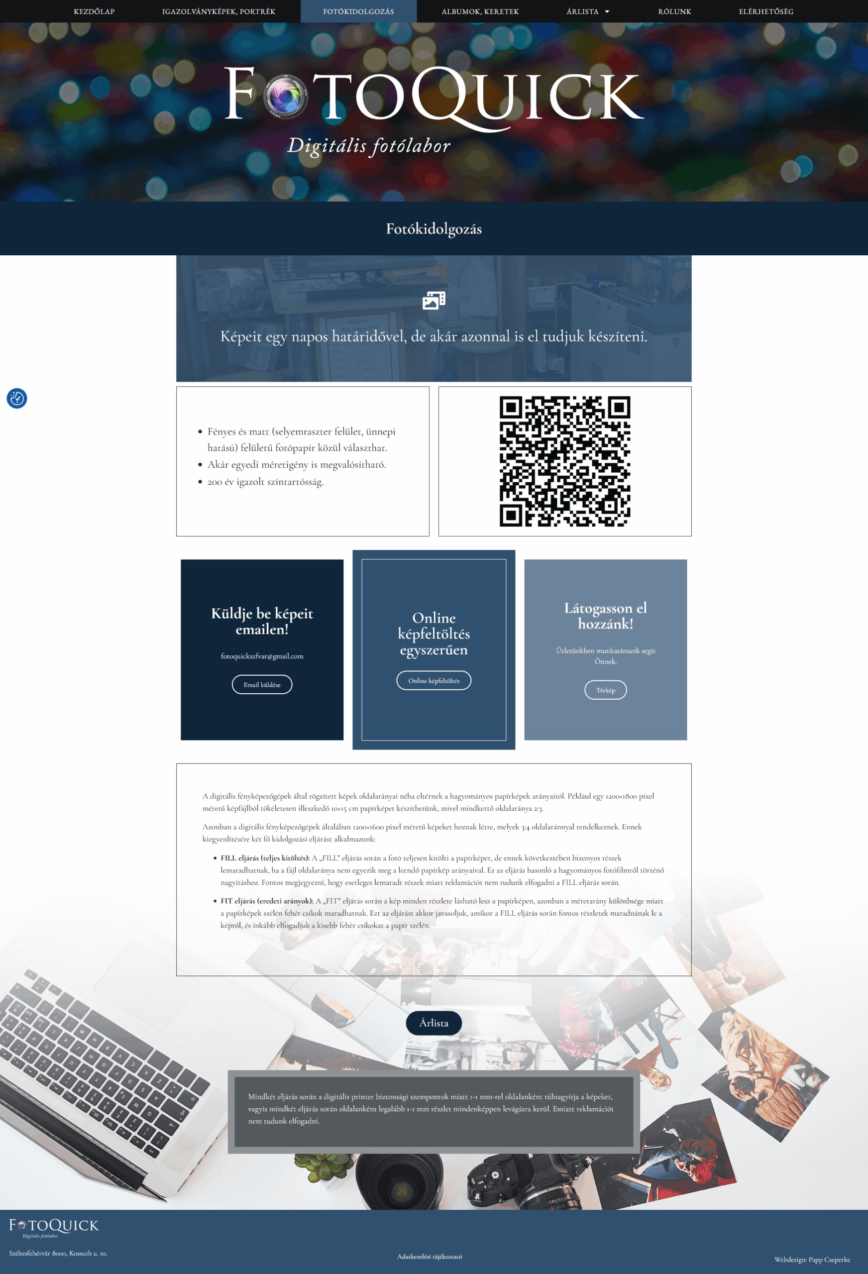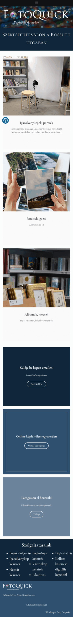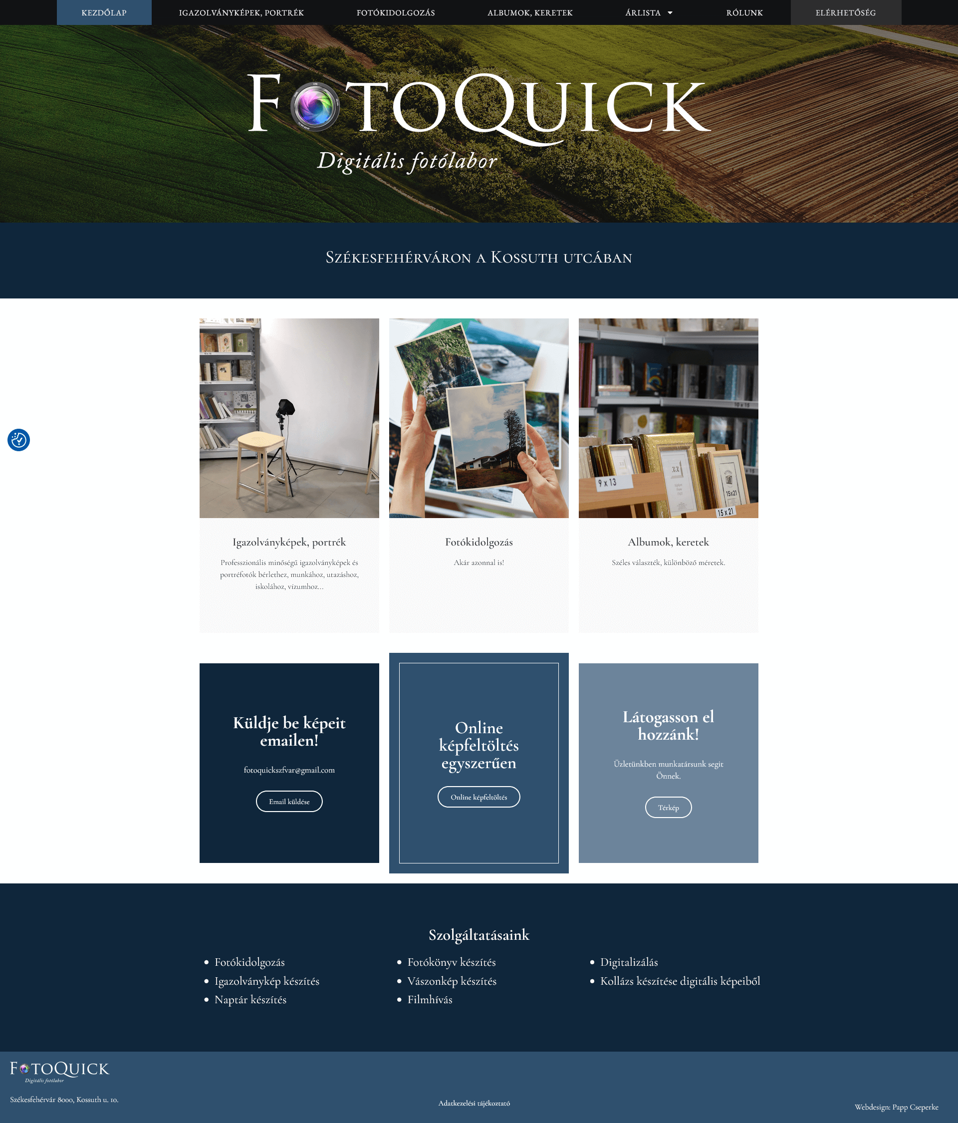 This is a photo laboratory and retail store at Székesfehérvár. Because they still classical chemical process of creating photographs, I decided to create a logo and chose serif fonts and hues of blue that features classical values: Reliablity, loyalty, timelessness.